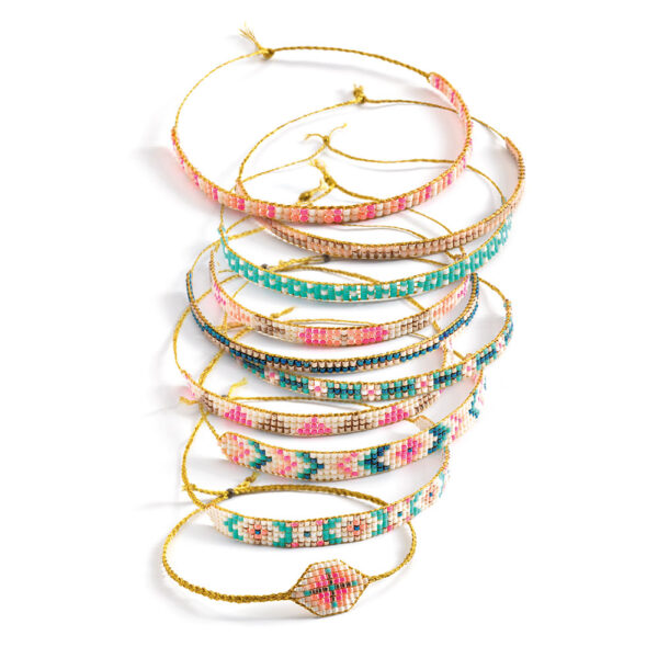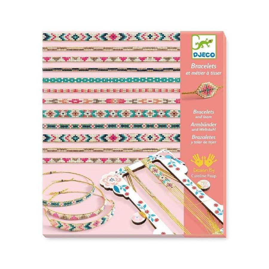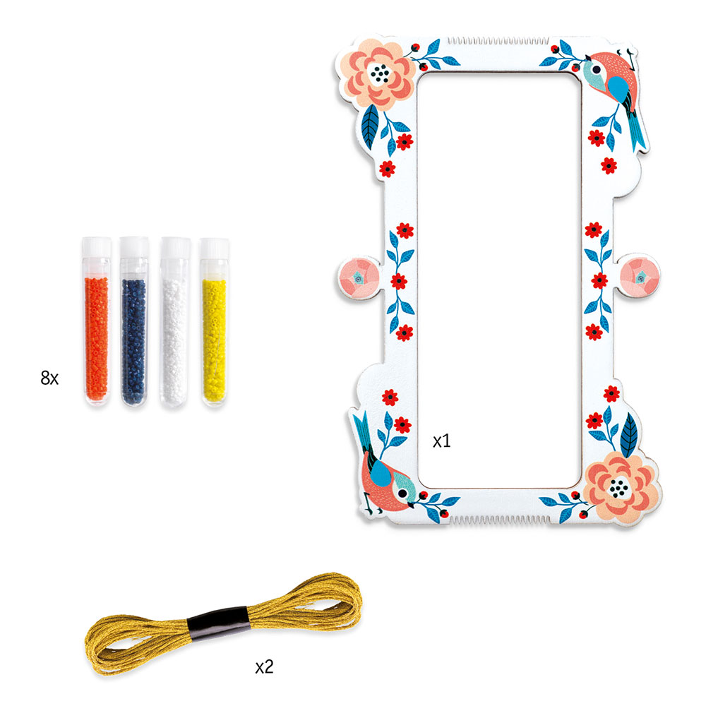Ένα υπέροχο σετ από την εταιρεία Djeco που περιλαμβάνει 8 θήκες με χάντρες σε διάφορα χρώματα, 1 βελόνα, 1 σχοινάκι και ένα βοηθητικό πλαίσιο για τις κατασκευές σας.