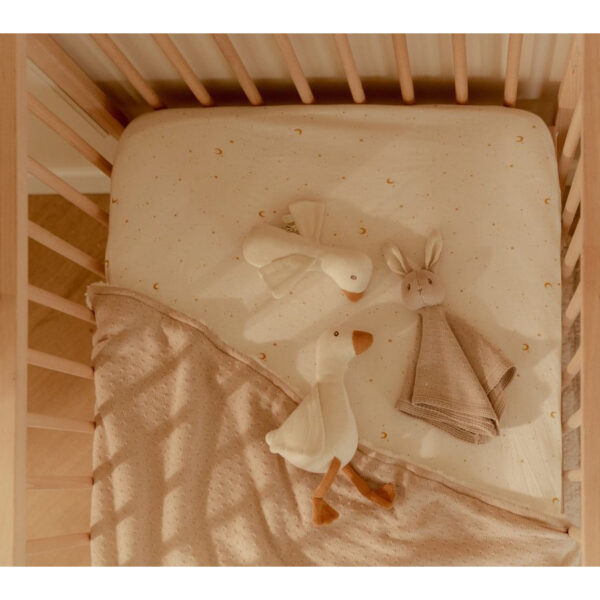 Όλα είναι κατασκευασμένα από απαλά υλικά σε ήρεμες, φυσικές αποχρώσεις. Ειδικά σχεδιασμένο για τους πρώτους μήνες. Μια κομψή και ζεστή υποδοχή για το μωρό και μια συγκινητική κίνηση για τους νέους γονείς.